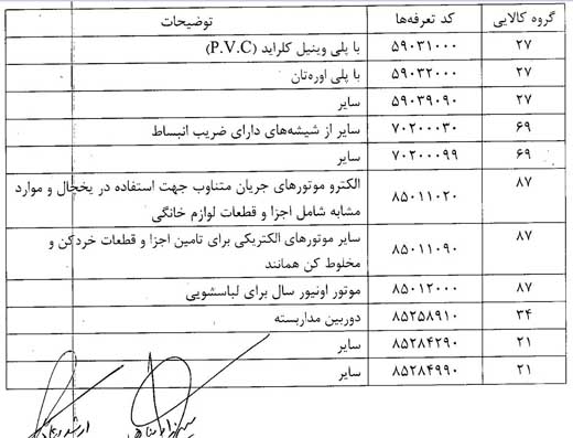 گمرک ایران اضافه شدن تعداد 10 (ده) ردیف کد تعرفه جدید به فهرست کالاهای...